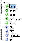 对每一个输入的字符串,我们构造一个 ANTLRStringStream 流 in,用 in 构造词法分析器 lexer,词法分析的作用是产生记号,用词法分析器 lexer 构造一个记号流 tokens,然后再使用 tokens 构造语法分析器 parser,至此已经完成词法分析和语法分析的准备工作。最终调用语法分析器的规则 prog,完成对表达式的验证。详细的 Java 程序参考样例代码中的 Test.java